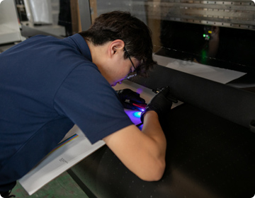 寸法、印刷、加工の精度などを確認し、万全の状態で次工程へ進みます。